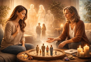 Sessão personalizada para identificar bloqueios financeiros ligados à sua história familiar.